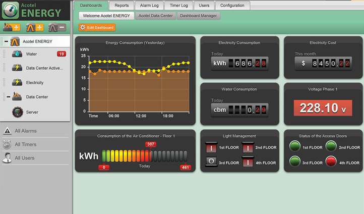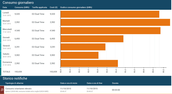 Una volta individuati ed installati i dispositivi per la rilevazione dei consumi è possibile monitorarli attraverso un’interfaccia semplice ed intuitiva. Tali strumenti possono essere utilizzati in diversi siti aziendali e si adattano a qualsiasi soluzione: industrie, catene di negozi, aziende multi-sede, uffici, alberghi, bar & ristoranti, aziende vinicole etc..etc.